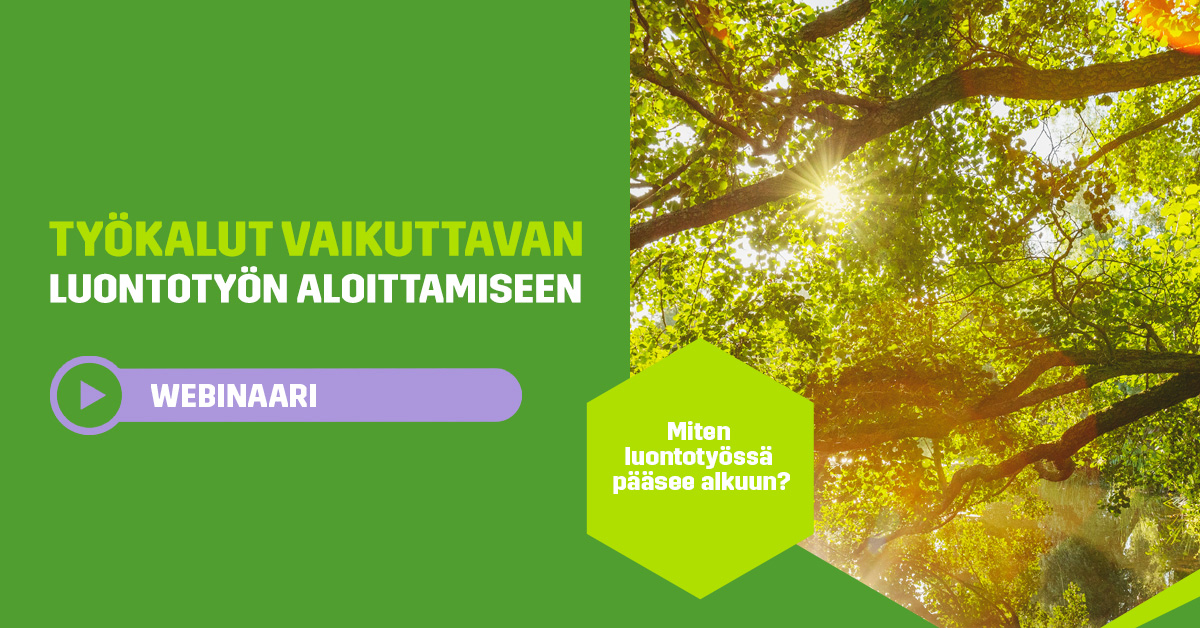 Webinaarimme Työkalut vaikuttavan luontotyön aloittamiseen herätti paljon kiinnostusta ja esiin nousi monia mielenkiintoisia kysymyksiä. Monilla yrityksillä luontotyö on vasta alussa, joten sen käynnistämiseen ja erityisesti mittaamiseen liittyvät asiat askarruttavat. Keräsimme webinaarin aikana nousseet kysymykset yhteen pakettiin.