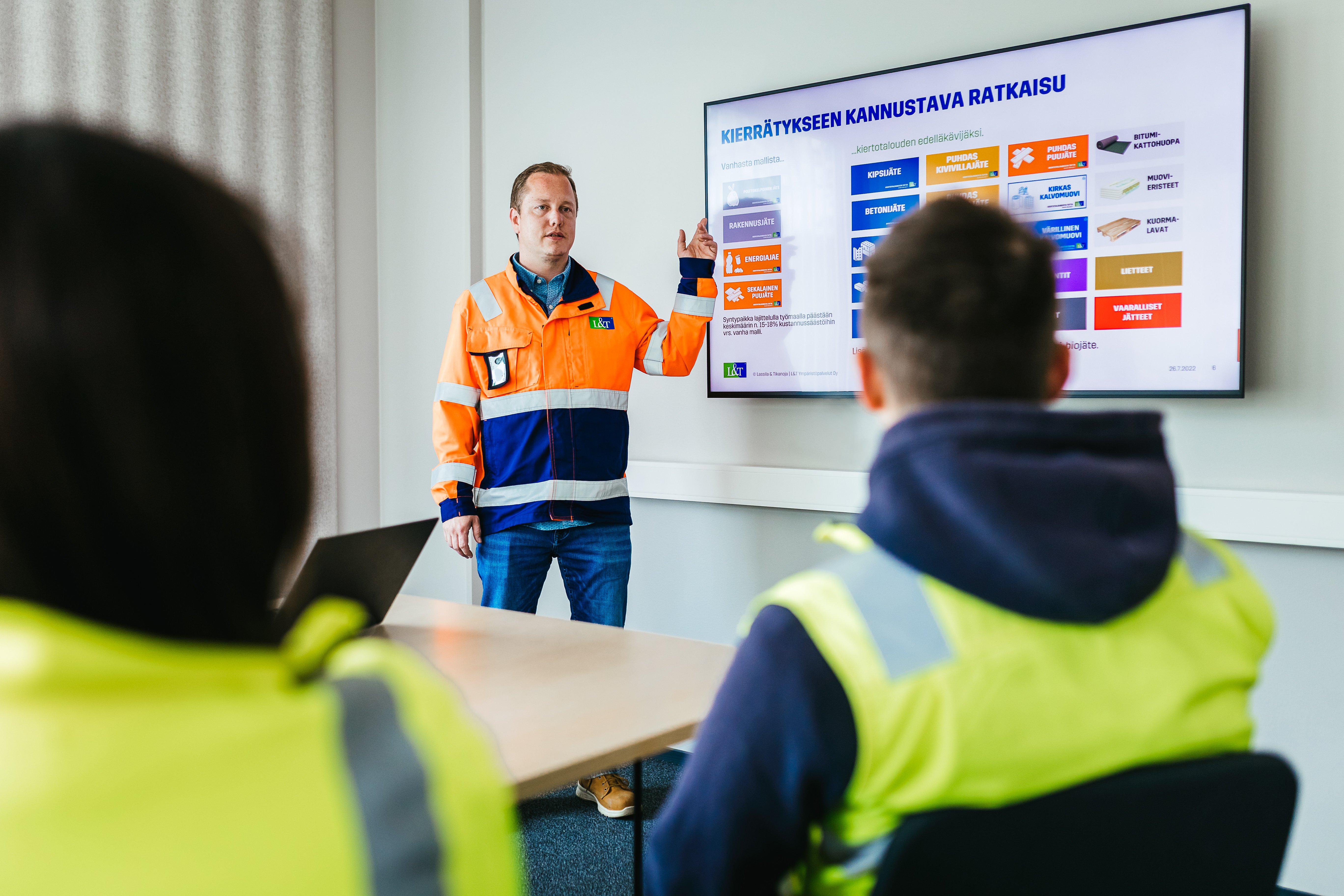 Työmaalla järjestetään tarvittaessa myös lajittelukoulutuksia, joissa käydään esimerkiksi uusimmat muutokset tarkemmin läpi. Koulutuksessa opastetaan myös lajittelemaan ne jätejakeet, joilla on merkittävä positiivinen vaikutus työmaan kierrätysasteeseen.