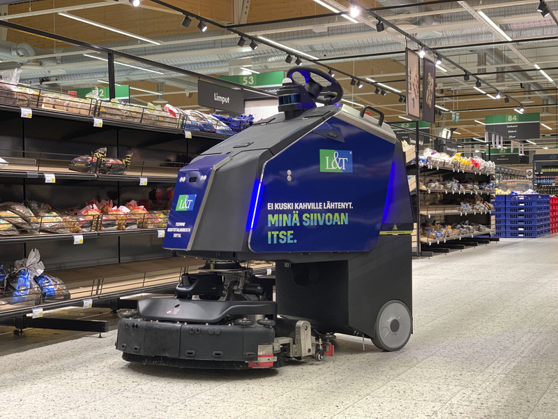 Valtaosa L&T:n roboteista tekee puhdasta jälkeä suurissa marketeissa ja kauppakeskuksissa, kuten asiakkaamme Kemin Prisman tiloissa. Robotteja on otettu käyttöön myös varasto- ja tuotantotiloissa sekä teollisuudessa. Jopa 18 000 m 2 puhdistuu yhdellä latauksella. Itsenäisesti kulkevan robotin avulla voidaan myös parantaa työturvallisuutta esimerkiksi vaarallisissa siivouskohteissa, minkä lisäksi robotti pärjää hyvin samassa liikenteessä muun automaattirobotiikan ja trukkien kanssa. Lukemattomat sensorit varmistavat, ettei törmäyksiä tule. Robotti osaa myös ilmoittaa, jos jokin paikka jää puhdistamatta.