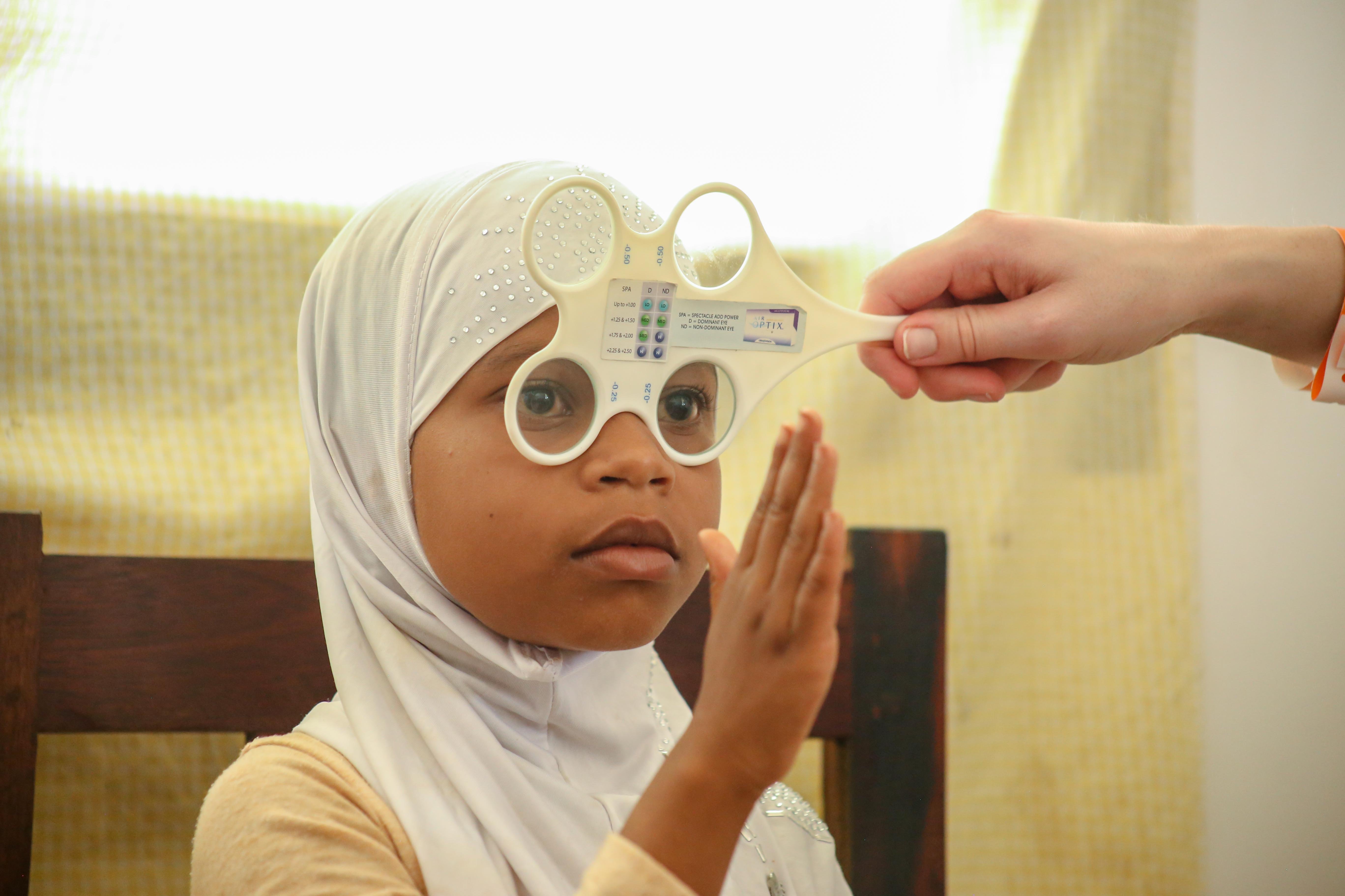 63-vuotias Mathmuna Thsalaada on kärsinyt pitkään sekä kauko- että lähinäköongelmista. Hänellä oli ennen eläköitymistään kauppa, jossa hän myi päivittäistavaroita. Kolmen lapsen äitinä sekä viiden lapsenlapsen isoäitinä hän on kärsinyt siitä, ettei ole voinut nähdä heitä kunnolla ja lukeminenkin on ollut haastavaa. Kun Mathmuna sai silmilleen monitehosilmälasit, maailma kirkastui välittömästi. Isot monitehokehykset auttavat tottumaan laseihin helpommin ja mikä parasta, hän voi pitää niitä koko ajan päässään. Hän odottaa innolla, että näkee omat perheenjäsenensä sekä pääsee taas lukemaan Koraania sekä satuja pienille lapsenlapsilleen. Hän kiittää lahjoittajaa ja lähettää terveisiä Suomeen.