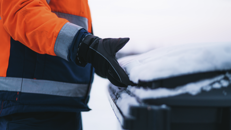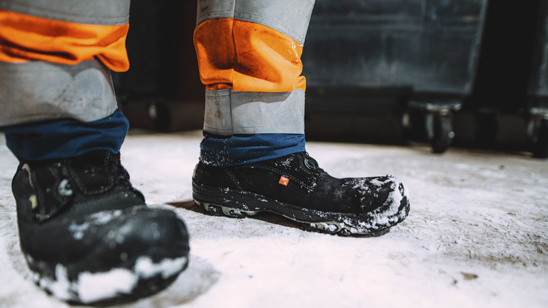 Talvikäyttöön sopivat työhansikkaat pitävät jätehuollon ammattilaisen kädet lämpiminä ja mahdollistavat osaltaan tukevan otteen jäisiinkin astioihin. Liukkailla keleillä lumen ja jään aikaan L&T:n kuljettajalla on aina joko nastoitetut turvajalkineet tai vaihtoehtoisesti turvajalkineeseen erikseen lisättävät liukuesteet. Myös esimerkiksi jäteautojen astinlautojen kuntoa seurataan säännöllisesti: astinlaudat kuluvat normaalia kovemmassa käytössä, sillä kuljettaja saattaa vuoronsa aikana nousta autoon ja autosta pois jopa useita satoja kertoja. Siksi jalan alla astinlautojenkin on oltava kunnossa.