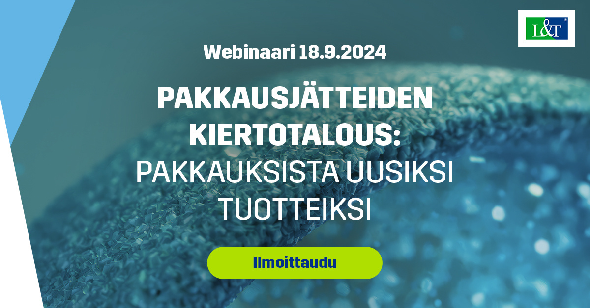 L&T:n tavoitteena on saada asiakkaidensa jätteistä kiertoon 70 %. Tällä hetkellä mennään vajaassa 60 prosentissa. Millaisia ovat pakkausjätteiden kierrätyksestä saatavat ilmasto- ja luontohyödyt ja mitä niiden kierrättämisessä pitää huomioida? Siitä webinaarissa kertoo L&T:n johtava ympäristövastuun asiantuntija Antti Pitkämäki.