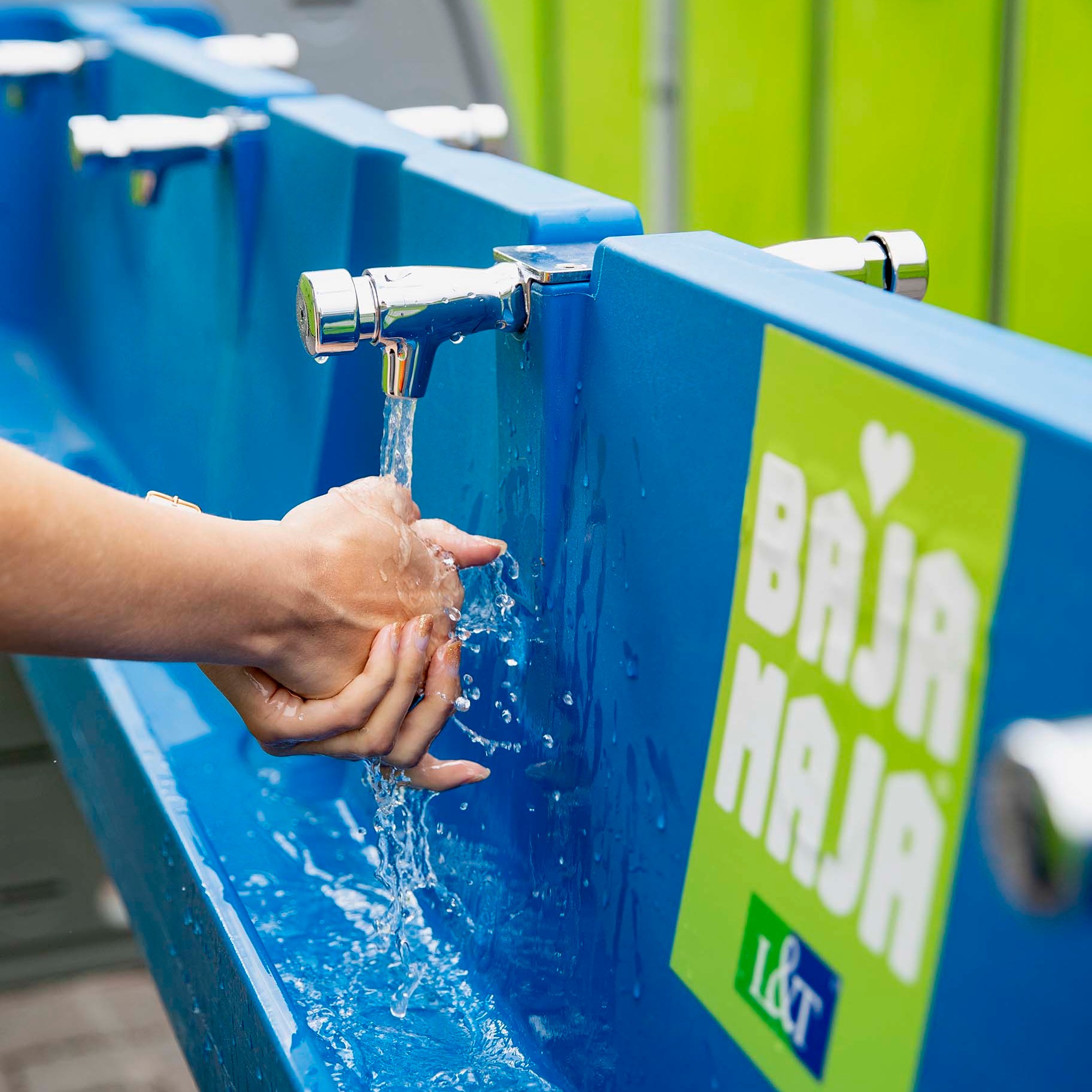 L&T vastaa myös siitä, että Bajamajoissa on käsienpesua varten pesunestesäiliöt täynnä, eivätkä paperit pääse loppumaan. L&T:n henkilökunta tarkkailee tilannetta säännöllisesti ja täydentää hyvissä ajoin materiaalit.