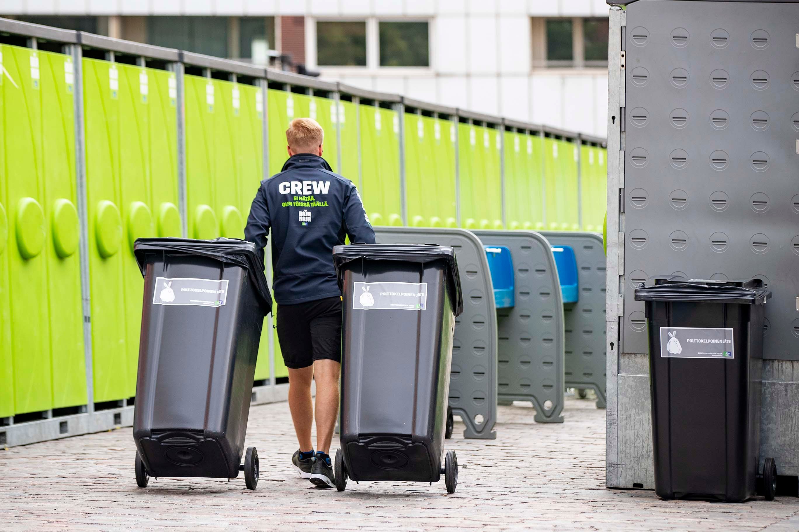 – Toistaiseksi festivaalialueella on mahdollista lajitella polttoon menevä sekajäte sekä biojäte ja muovit. Ravintoloitsijat lajittelevat lisäksi kartongin ja pahvin, kalvomuovin, lasin ja metallin. Olemme keskustelleet United Festivalsin kanssa siitä, miten voisimme tehostaa yleisöalueen lajittelua. Yksi vaihtoehto on, että meiltä olisi henkilökuntaa lajittelupisteillä opastamassa, Heino miettii.