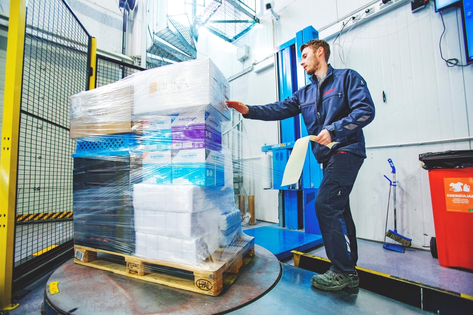 ”Päivässä lähtee tavaraa 200–300 lavaa, 4–5 täysperävaunurekkaa. Niissä kulkee kaikkea, mitä ravintoloissa käytetään eli pihvejä, ranskalaisia, vihanneksia sekä pakkaus- ja käyttötavaraa”, luettelee logistiikkapäällikkö Vesa Lehmuskallio.