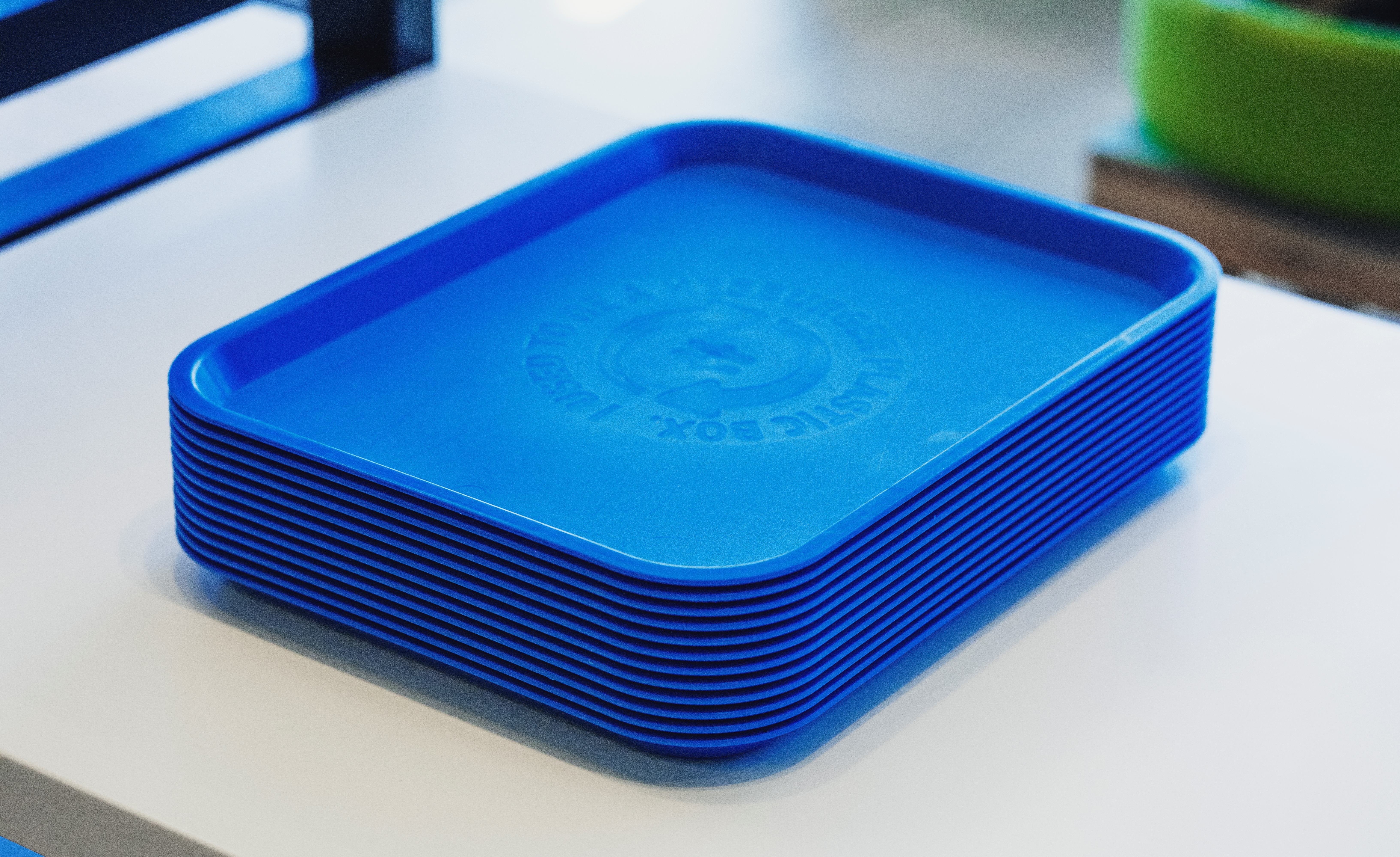 Merkittävä kierrätysinnovaatio ovat tarjottimet, jotka syntyvät loppuun käytetyistä sinisistä kuljetuslaatikoista. Laatikot murskataan ja niistä tehdään muovirakeita, joista valmistetaan tarjottimia – ne tunnistaa ravintoloissa samasta sinisestä väristä. 6 000 laatikosta syntyy noin 19 000 tarjotinta, ja niiden hiilijalanjälki on 85 prosenttia pienempi kuin uudesta muovista – eli öljystä – tehdyllä tarjottimella.