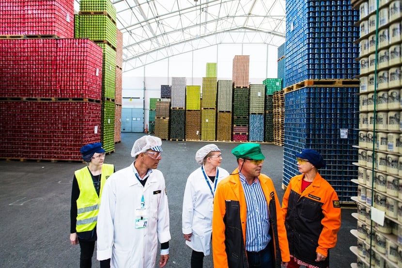 Modernissa panimossa ei kilise, kolise eikä pauhaa. Linjalla numero 10 humisee 75 000 tölkkiä tunnissa kohti suomalaisten kylmiöitä. Infotaulu katonrajassa kertoo reaaliaikaista tietoa muidenkin linjojen tilanteesta: kaikki sujuu niin kuin pitää, ja pienet myöhästymiset saadaan ajettua nopeasti kiinni.