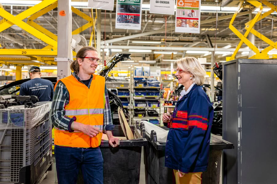Jätehuollon ja vastuullisuuden koulutus sisältyy Valmet Automotivella henkilöstön perehdytykseen.