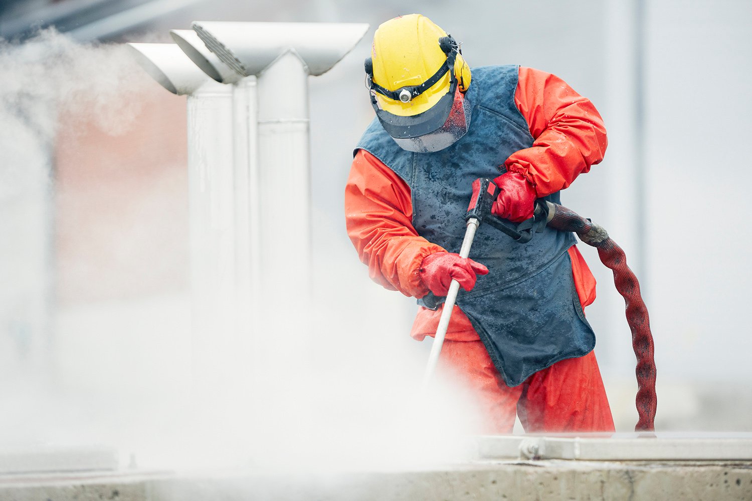 Osa Teollisuuspalveluiden perehdytystä on laitekohtainen perehdytys. Meillä työskennellään koneilla ja laitteilla, jotka ovat väärinkäytettyinä vaarallisia. Käytämme isoja ja raskaita imu- sekä pesulaitteistoja ja korkeapainepesureissa voi olla jopa 3 000 barin paine. Tämä kaikki tarkoittaa riskejä niin itselle, muille ihmisille kuin asiakkaan omaisuudelle – siksi meillä ei tingitä työturvallisuudesta piiruakaan.